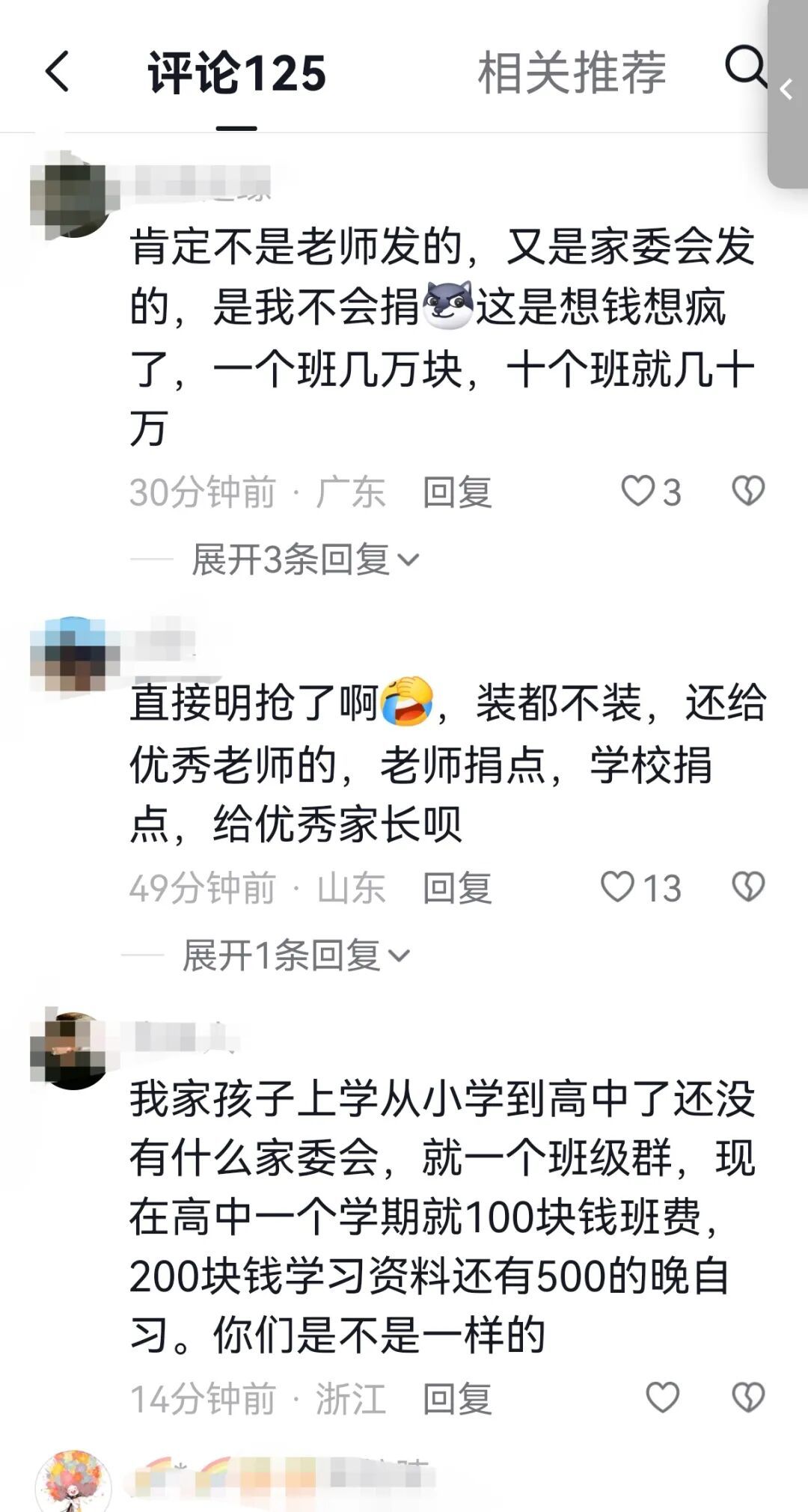 对此,有网友直言“直接明抢啊,装都不装,还给优秀老师的”,还有评论说“别人的孩子优秀,还要差的家长掏腰包鼓励,还必须交1000,玩呢,还不如给自己孩子直接发1000”。